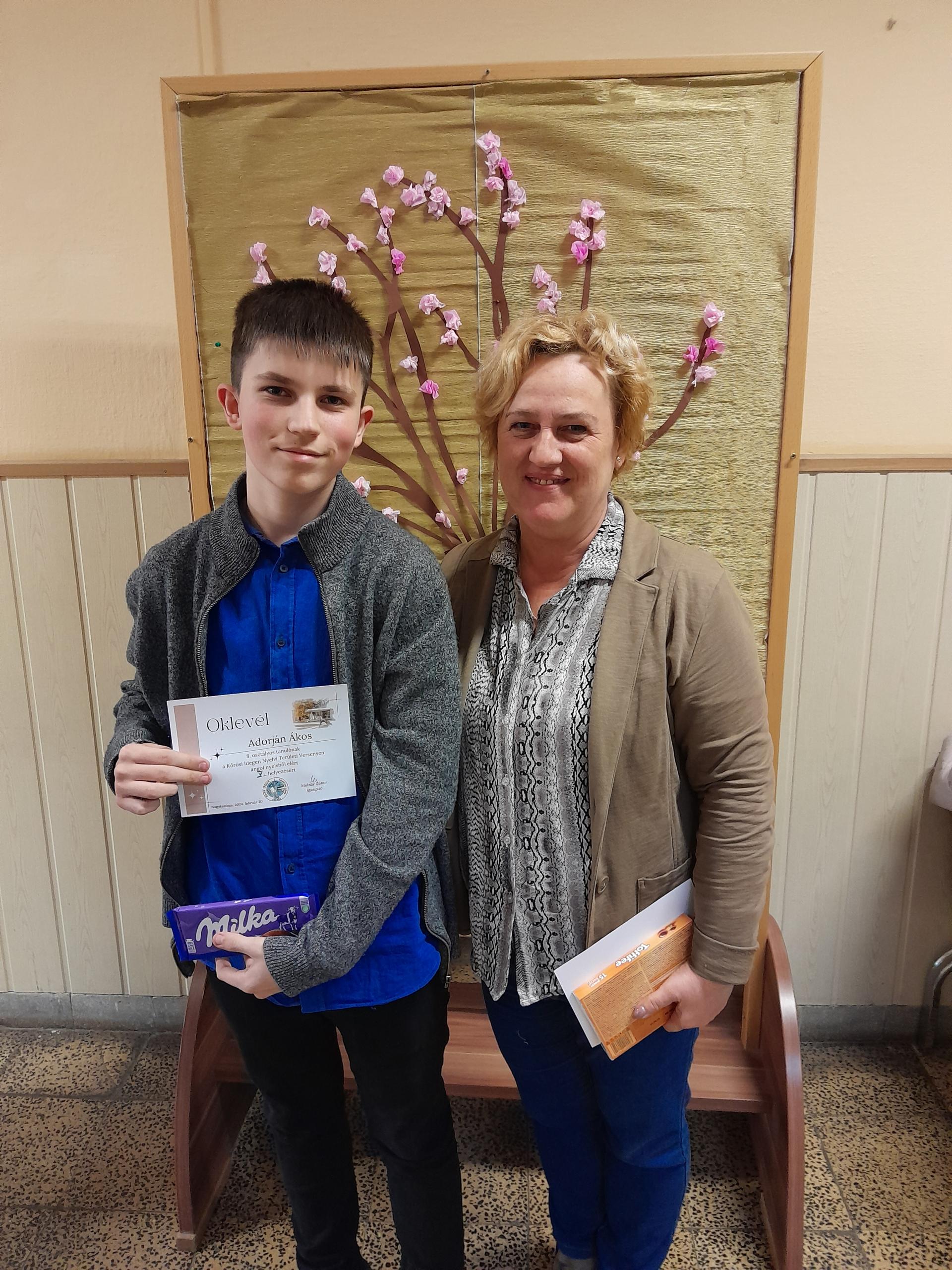 Adorján Ákos 8.osztályos tanuló 5. helyezés